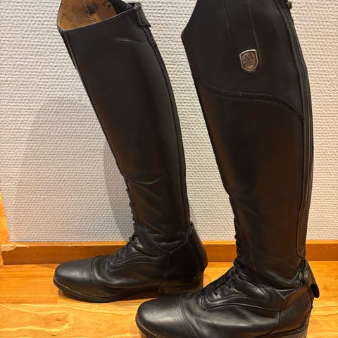 Myydään uudet ja käyttämättömät mountain horse sovereign high rider saappaat koossa 38 regular/wide. Saappaan varren pituus 46cm. Pohkeen leveys 40-43cm. Venyy enemmänkin. Värinä musta.