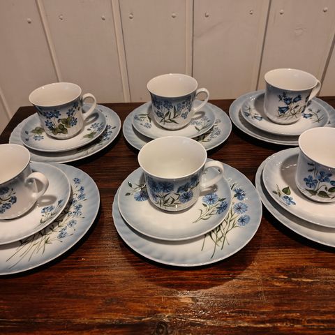 Myydään Svaneholm sarjan astiastoa. 5kpl kuppia, 7kpl aluslautasia (yhdessä pieni pala lohjennut) ja 7 kahvilautasta.