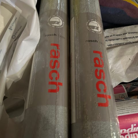 Rasch tapetti, mitat 0,53 x 10,05 metriä (5,32 m² peittävyys). Väri valkoinen ja harmaa, tiiliseinäkuviointi. Materiaali soveltuu seinäpintojen koristeluun. Valmistettu Saksassa.