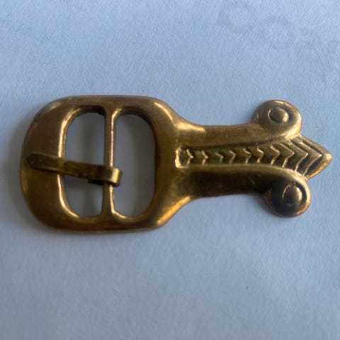 Kalevalan pronssinen vyönsolki, ollut normaalissa käytössä. Vintage-muotoilu, harvinainen.