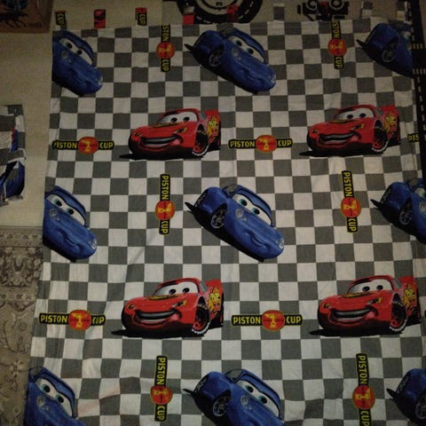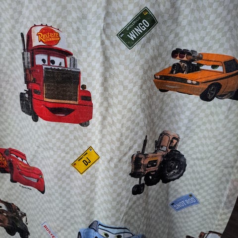 Cars, Disneyn autot lastenhuoneen kappaverho. Korkeus n.51cm ja n. 4m 16cm pitkä.