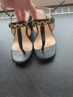 Käyttämättömät Guessin kesäsandaalit nahkaa, koko 36. Pohjan pituus 23 cm. Koron korkeus 6,5 cm. Pehmeä pohja, kaunis metallikoriste.