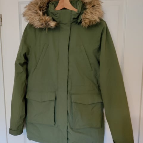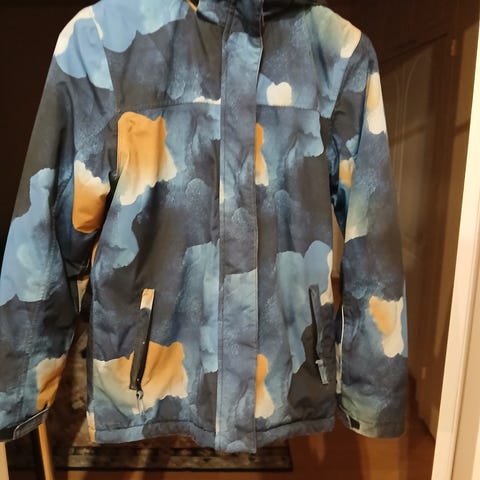 Kiva takki vaikka lasketteluun. Hihassa korttitasku. Takissa on lumilukko.