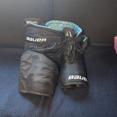 Naisten Bauerin jääkiekkohousut, suht vähän käytetty. Naisten vartalolle sopiva muotoilu. Jotakin nukkaa ja noin 1 cm kokoinen viilto takana. Jääkiekko housut