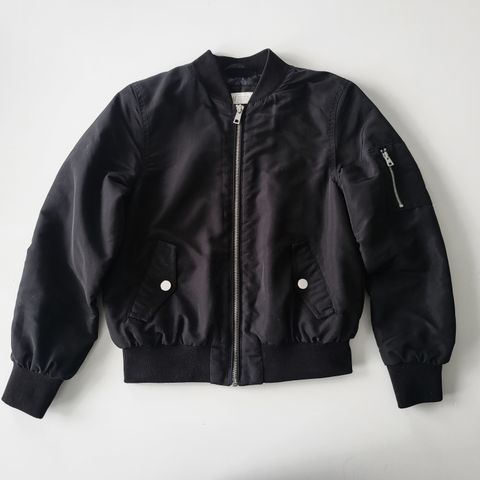 Edessä napilliset taskut, toisessa käsivarressa vetoketjutasku. Ohut vuori.
