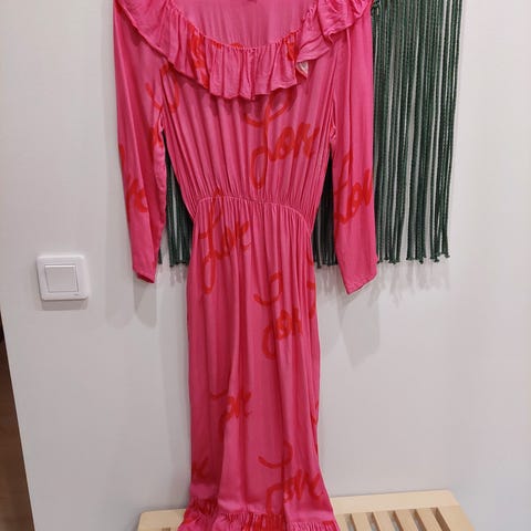 Pinkki-oranssi-musta, upea Vimman mekko. Itsellä jäänyt käyttämättä. Koko M, vastaa kokoaan.
