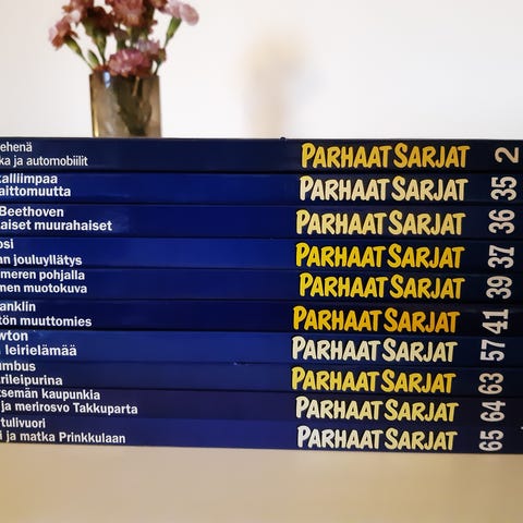 Kuvassa olevat Aku Ankan parhaat sarjat kirjat 80- luvulta. On luettuja ja kansissa kulumajälkiä. Kaikki 2e/kpl tai 15e/kaikki. Nouto tai postitus. Kulkeutuu myös Turkuun omien menojen mukaan.