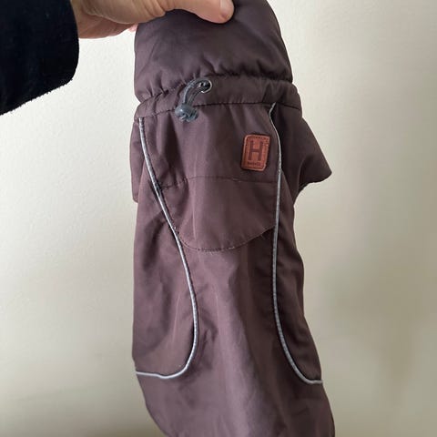 Hurtan talvitakki, kunto hyvä (joitain koirankarvoja saattaa olla ja on säilytyksestä rypyssä, mutta muuten kunto erinomainen). Koko 45, mutta mielestäni vähän naftia kokoa. Keskilämmin. Ei valjasaukkoa. Säädettävä kaula ja vatsaremmi. Takajalan remmit joustavat. Nouto Töölöstä.