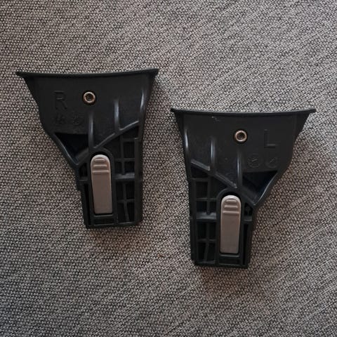 Britax -adapteri B-lite matkarattaisiin. Näillä saa kiinnitettyä turvakaukalon B-lite -rattaisiin