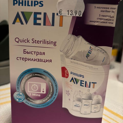 Philips Avent sterilointipussit käytettäväksi mikrossa, 5 kpl pakkauksessa. Avaamaton pakkaus.