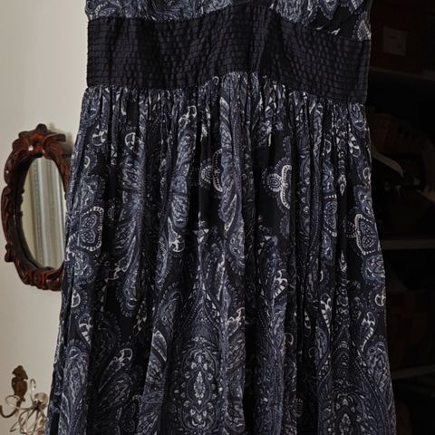 Saint Tropez merkinen musta slip on mekko, sopii myös alusmekoksi! Kokolapussa M, mutta sanoisin, että S-pieni M. Kunto hyvä, joitain pieniä langanvetoja ja myös timantteja on irronnut edestä ja helmasta. Ihanan silkkisen tuntuinen, ei kuitenkaan varmaan oikeaa silkkiä. Materiaalilappu leikattu pois.