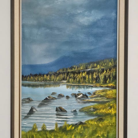 Öljyväri, taulun mitat kehyksineen 33 x 31