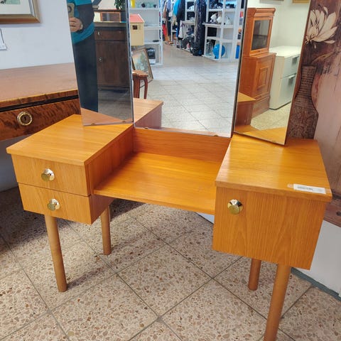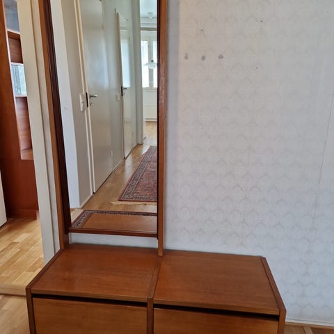 Vintage teak peililipasto lakkapinnassa hiushalkemia mutta ei hilse