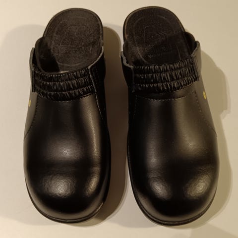 Muotoiltu, antistaattinen sisäpohja on irrotettava ja pestävä.Pistokkaan päällinen on vettä ja likaa hylkivää nupukkinahkaa. Tarrakiinnitys. ESD-hyväksytty.