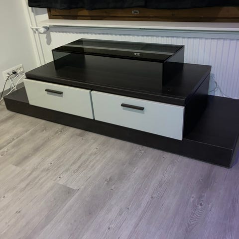 Puinen tv-taso. Tason yläosa on pyörivä. Alaosassa lasiovet 60. Nouto Kivitaipaleesta.