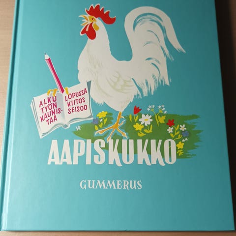 Hyväkuntoinen Aapiskukko kertoo kirja. Kulmasssa hieman kulumaa. Katso myös muut ilmoitukseni.