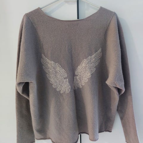Hunkydoryn harmaa neule koko L (M). Erikoinen malli, jossa toiven lieve pidempi. Laadukas materiaali niinkuin Hunkydoreissa yleensäkin eli 47%merino wool, 38% viscose, 10% nylon ja 5% cashmere. Siisti, hyväkuntoinen.
