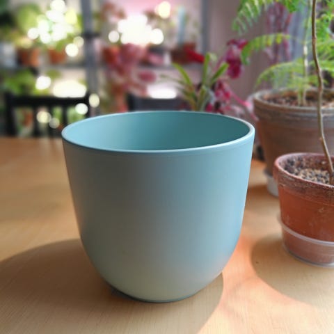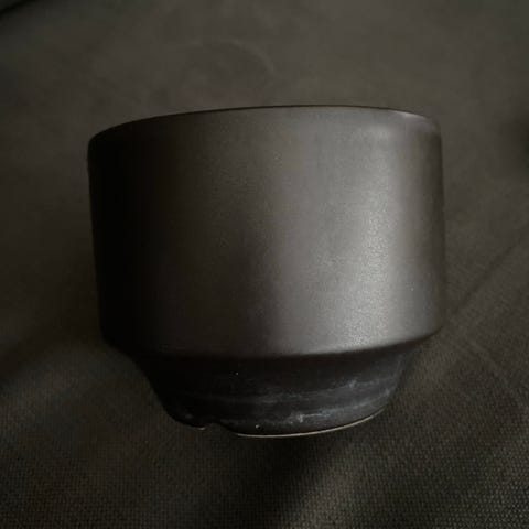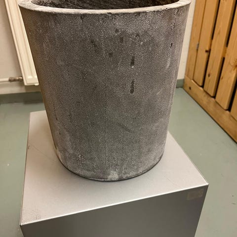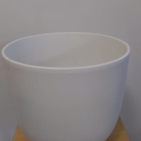 Arabian valkoinen suojaruukku. Pinttymää sisäpuolella ja muutamia naarmuja ulkopuolella. Korkeus 13.5 cm ja halkaisija 16 cm.