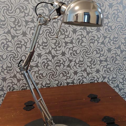 Ikean valkoinen pöytä/työvalaisin. Kulkeutuu Rovaniemelle omien menojen mukaan.