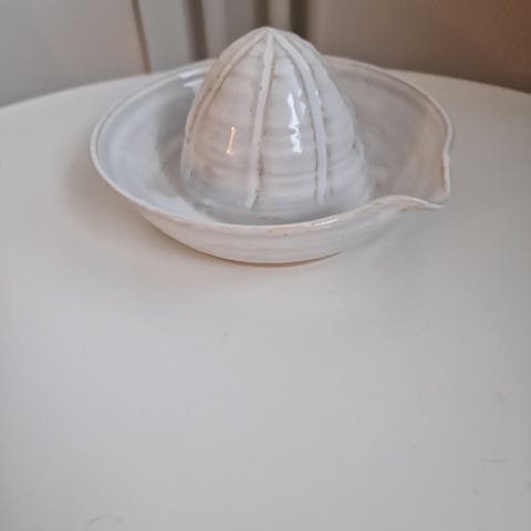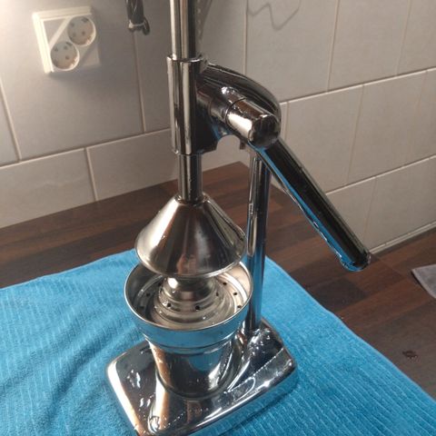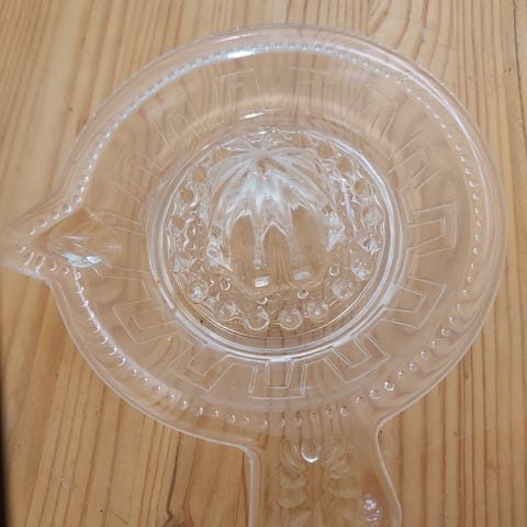 Upea lasinen sitruspuristin kaatonokalla. Nouto Lauttasaaresta tai postitus toridiilillä.