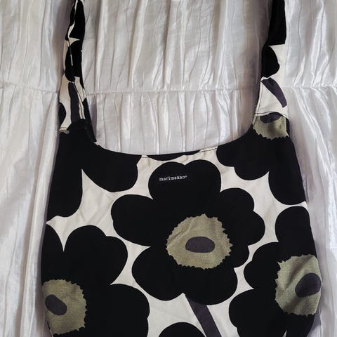 Marimekon iki-ihana ja erittäin siisti unikko olkalaukku. Väri kirkkaat, ei haalistumaa eikä kulumaa. koko 32 cm x 34 cm, hihna 102 cm. Sisällä vetoketjutasku, jossa magnettineppari. Tehty Suomessa.
