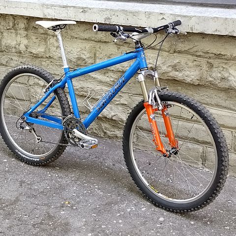 Titec Pluto Carbon Bar, Shimano deore XT shadow rear derraileur, shimano deore 3 x 9 shifters, shimano deore Hollowtech II crankset, Continental Tires, Shimano Hydraulic brakes.