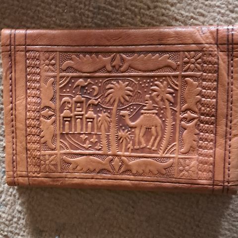 Lompakko mopsin kuvalla, tassunjäljet takakannessa.
