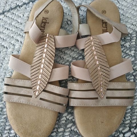 Hopeiset sandaalit, joista puuttuu joitakin koristekiviä. Nämä hävinneet varastossa. Muuten uuden veroiset. Jääneet käyttämättä väärän koon vuoksi.