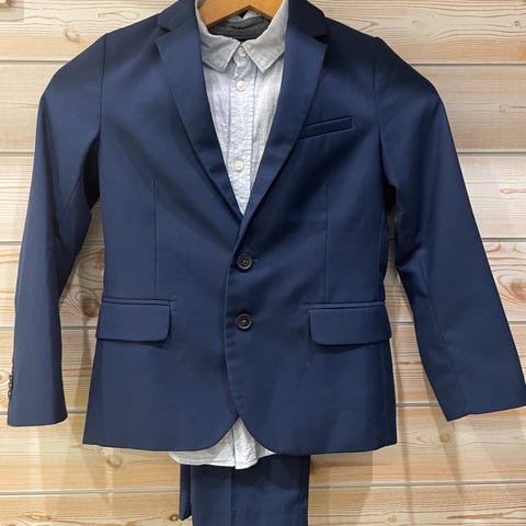 Myynnissä myös Zaran valkoinen paita kokoa 128 cm sekä pukuun hyvin sopiva sininen solmio.