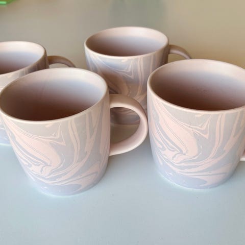 6 mukia ja yksi lautanen J.L. Menau Itä-Saksalainen posliini (GDR)