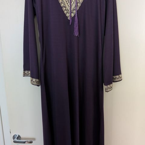 Kaftaani, käyttämätön, lila/musta ja valkoiset juovat. Vyö ei sisälly kauppaan.