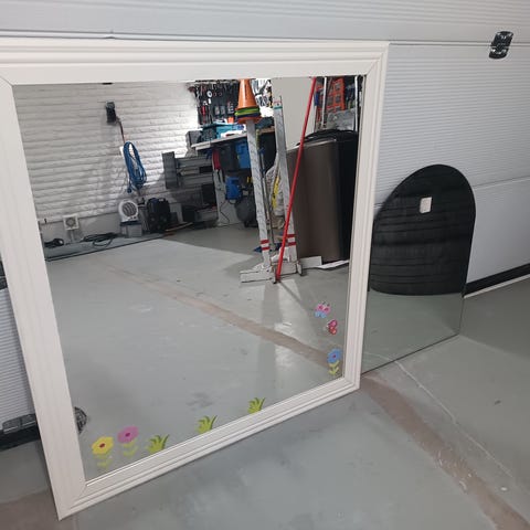 Annetaan seinäpeili, kaksi kulmaa mennyt rikki.