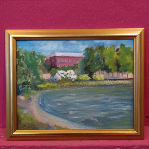 Myydään öljyvärityö .Nimi rytmi. Koko 66x120 cm. Toisessa kuvassa pieni tarina taulun synnystä.