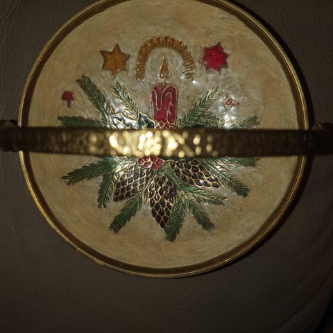 Myydään vintage messinkinen koristeellinen kulho. Made in Italy, Depose. Halkaisija 25 cm, korkeus 6 cm, paino 558 g. Katso myös muut ilmoitukseni!