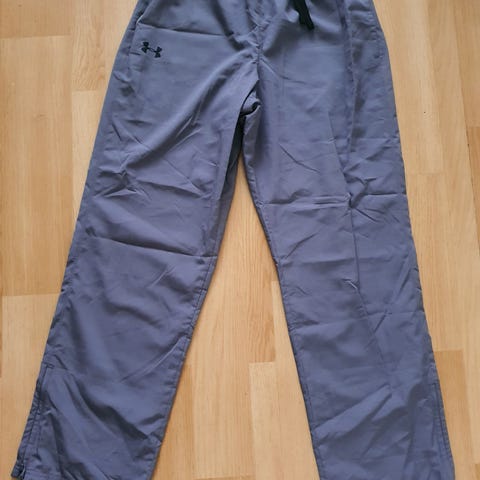 Under armourin kevyet ja ohuet housut metsänvihreässä värissä limenvihreillä yksityiskohdilla. Koko on M. Polvitaipeissa verkkotuuletus ja sivuilla taskut.. Kangas joustaa jonkin verran (100 % polyesteri) ja vyötärönauha reilusti. Lahkeen sisämitta 71 cm, vyötärö-haara 30 cm, nilkan leveys 14 cm ja vyötärön leveys 40 cm, mutta venyy joustinnauhan ansiosta. Oikeassa takareidessä pieni kuluneempi kohta (viimeinen kuva), mutta muutoin hyvässä kunnossa.