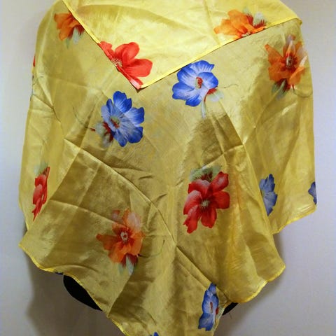 Huivi, mahd. Silkkiä, koko 10x12cm. Hapsut reunoilla.
