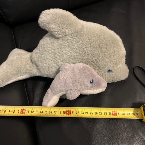 Delfiini pehmolelut. Isoin 120cm, toinen 70cm kolmas 40cm + mini.