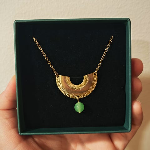 Hopeista Kaaria-kaulakorua koristaa laventelinsininen lasihelmi. Lasihelmen on tehnyt helsinkiläinen lasitaiteilija Nina Diaz Halonen perinteisellä lampputekniikalla. Riipusosan profiili on etupuolelta aavistuksen kupera, toiselta puolelta kovera. Riipusosan molemmat puolet on kuvioitu, joten voit käyttää korua kumminpäin haluat. Papukaijalukko. Säädettävä pituus 50/45 cm.