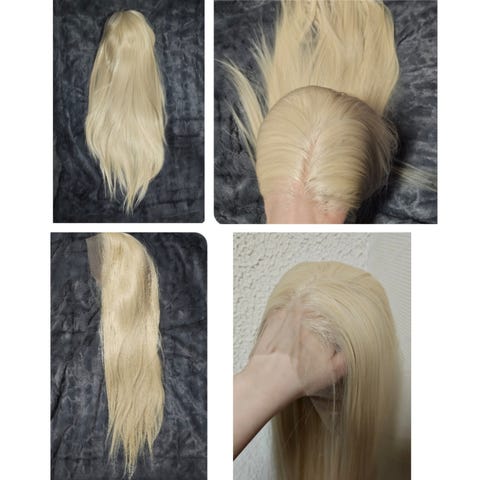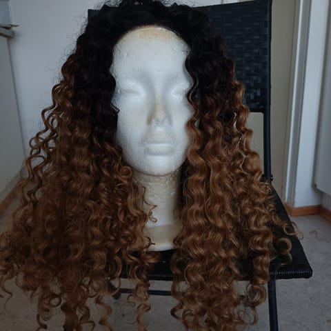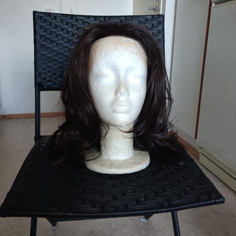 Lace front-peruukki lämpökäsittelyä kestävällä japanilaisella erikoiskuidulla. Kuituhius kestää kevyttä lämpökäsittelyä, höyrykäsittely on kuitenkin kuidulle hellävaraisempi vaihtoehto ja auttaa peruukkia säilymään parempana pitkään.