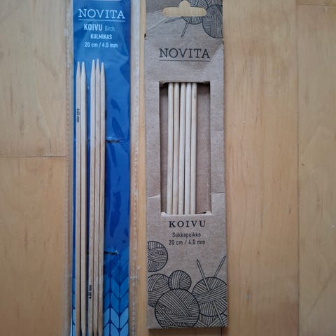 Hyväkuntoiset puikot ja käyttämättömät hakaneulat (silmukanpidike).