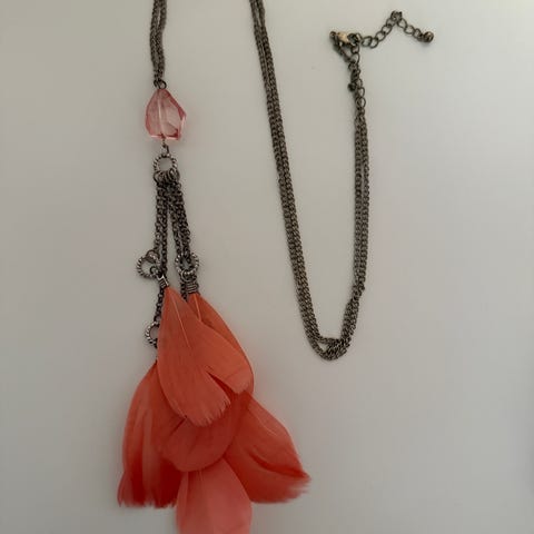 Tässä By Bilgren sulkakorussa on rouhea look. Höyhen tupsun pituus 12cm ketjun pituus 85cm
