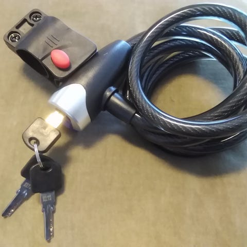 Soveltuu mopo / skootteri/ moottoripyörän lukitsemiseen. Ei katkea rautasahalla, viilalla eikä katkaisupihdeillä.