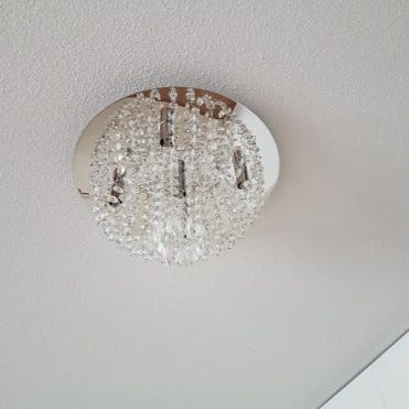 Halkaisija 50cm. Neljä kristalliketjua puuttuu. Vain nouto.