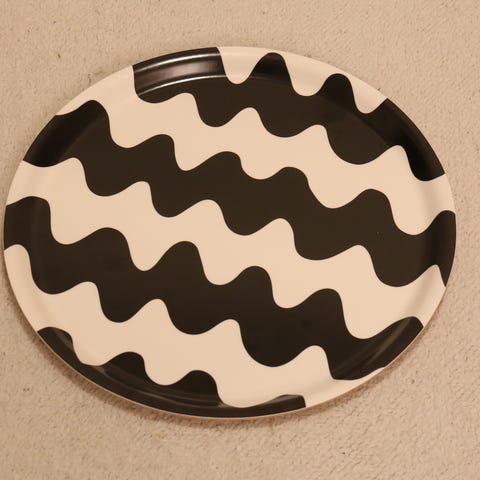 Lokki vaneritarjotin, halk. 31 cm. Käyttämätön, mustavalkoinen. Tarrat kiinni.