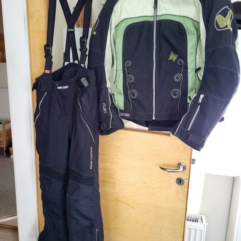 MP-Asu moottoripyöräasu takki ja housut musta–vihreä koko 42