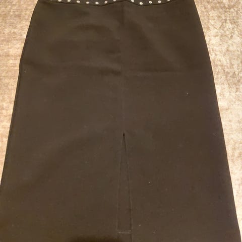 Elegantti fuksianvärinen kynähame erittäin hyvässä kunnossa, vuorellinen. 80% puuvillaa ja 20% polyesteriä. Leikkuu takapuolelta. Kokolapussa mainittu koko 46 vastaa EU:n M-kokoa (40). Ota huomioon hameen mitat: vyötärön ympärsymitta 86 cm, pituus 60 cm.