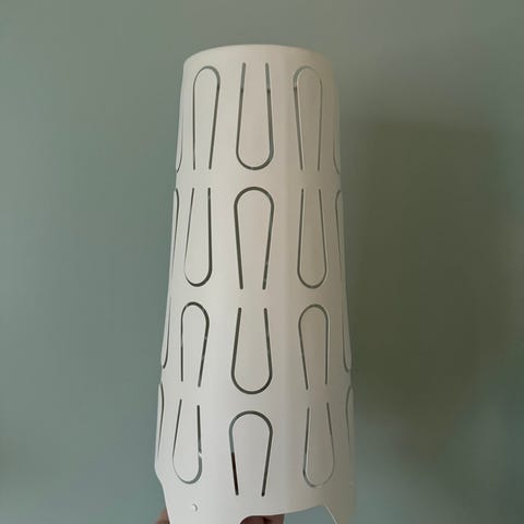 Ok kunnossa, lampun pidike pysyy kiinni vain 3/4 reiästä. Lamppu on metallia.