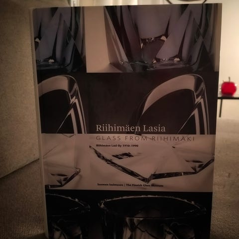 ”Vanha, suomalainen, puriste-, kristalli- ja taidelasi ovat suosittuja keräilykohteita. Tämä Riihimäen lasitehtaan kuvaston näköispainos on tehty helpottamaan vanhan lasin tunnistamista. Kuvastossa on mukana myös keräilijöiden kaipaamat taidelasit. Kuvasto on kolmekymmentäluvun alusta.”