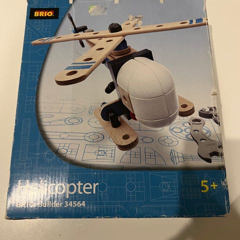 Kerran kasattu ja purettu Brio rakennussarjan helikopteri. Kaikki osat ja ohje tallessa.