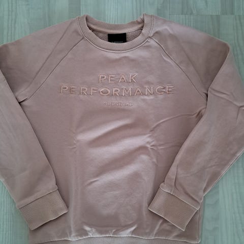 Paljolti pidetty tummansininen Peak Performance collegepaita, koko 130cm. Ihan pientä värin haalistumaa mutta ei merkittävästi, muuten hyvä kunto.